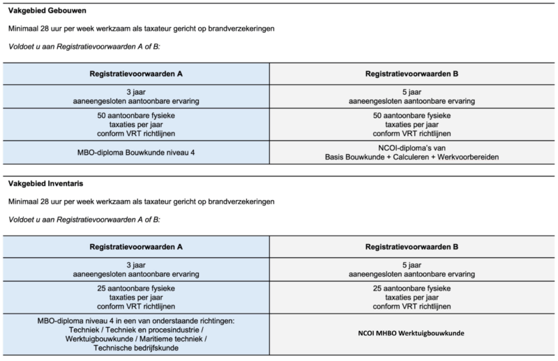Toelatingscriteria voor Registratie als VRT-taxateur in de Sector Brandverzekeringen